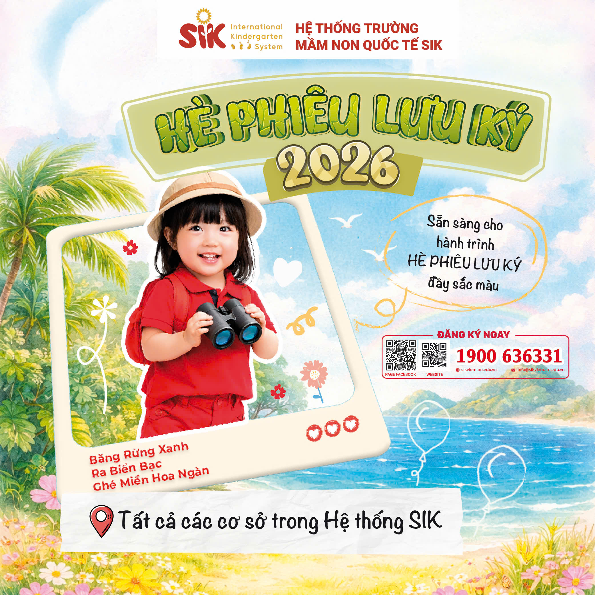 Tại SIK, chúng tôi mang đến một mùa hè đúng nghĩa của tuổi thơ - nơi mỗi ngày là một hành trình khám phá, mỗi trải nghiệm là một kỷ niệm đáng nhớ, và mỗi nụ cười đều rực rỡ như một cuộc phiêu lưu thật sự.